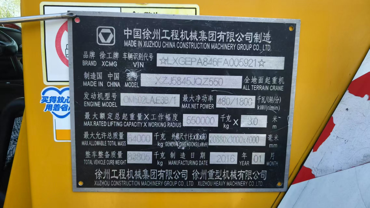 Especificación detallada de la XCMG Grúa todo terreno a continuación.