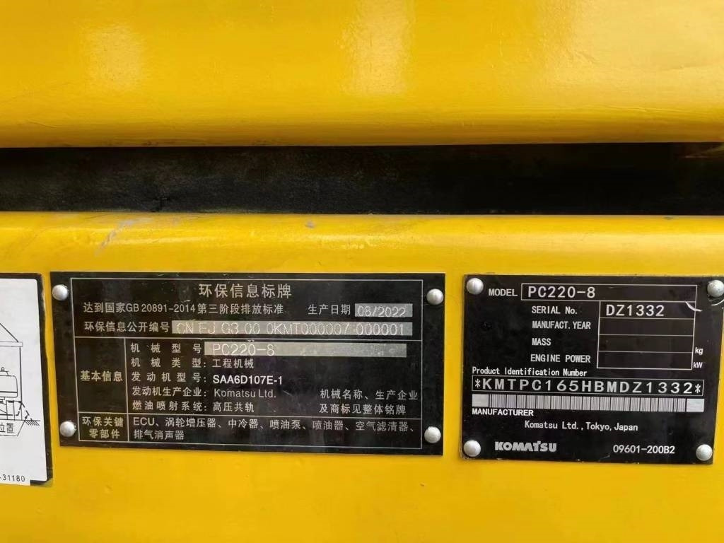 Vérifier les caractéristiques techniques de l'appareil, choisies dans le catalogue KOMATSU PC220-8 Pelle sur chenille.