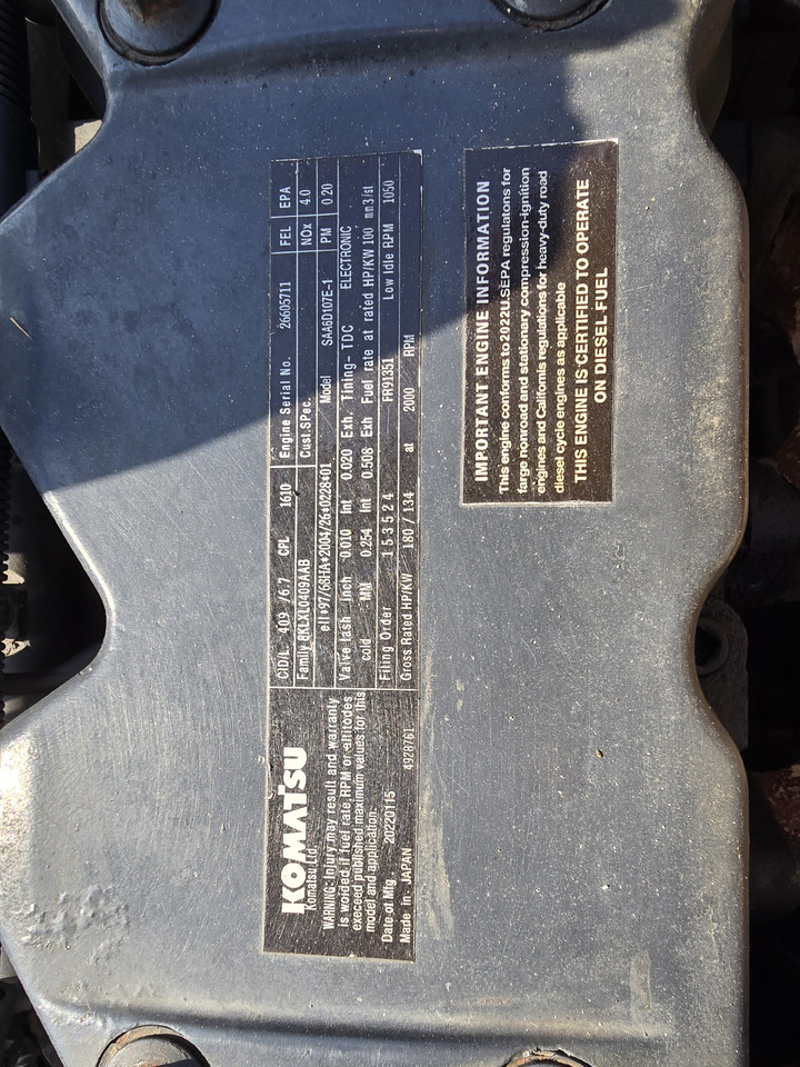 Silnik/transmisja: diesel, 170 hp, silnik: SAA6D107E-1, Komatsu.