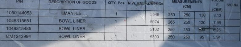 Sprawdzić informacje techniczne na temat elementów wyposażenia z katalogu METSO Kruszarka stożkowa.