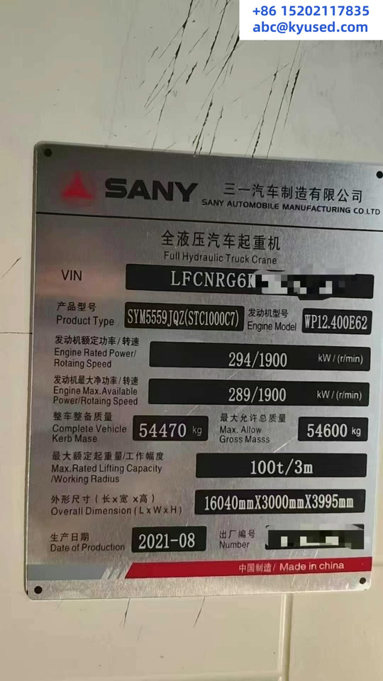 The detailed specification of SANY Mobile crane is provided below.
