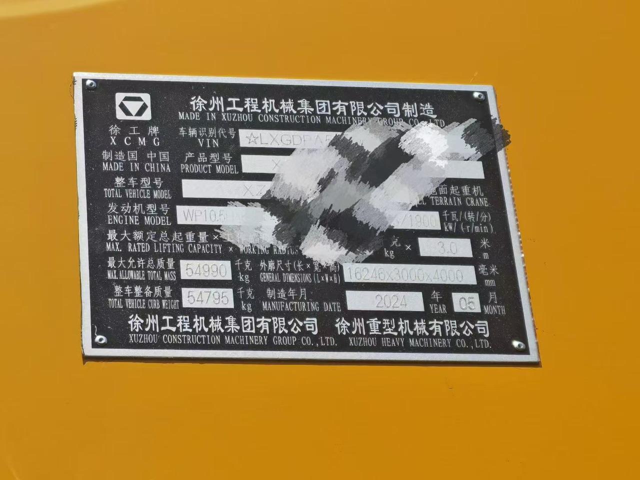 The detailed specification of XCMG XCA160 All terrain crane is provided below.