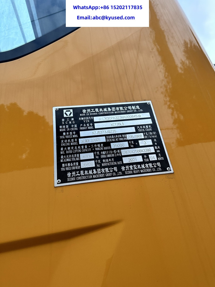 Check the technical data of the unit, picked out from the catalog of XCMG QY35K Mobile crane.