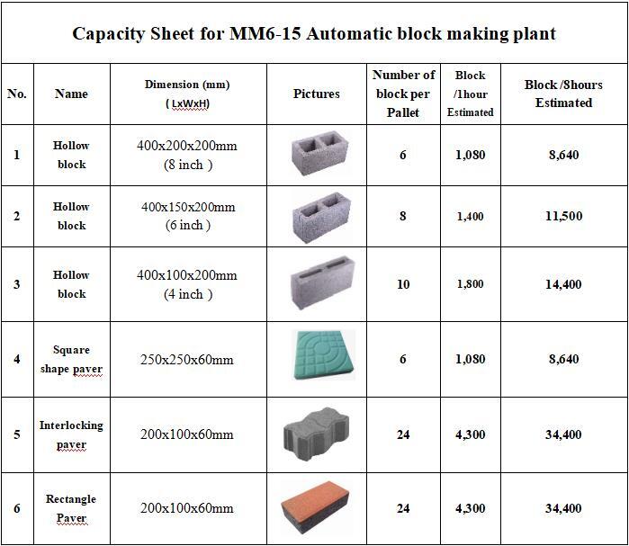 Check the technical data of the unit, picked out from the catalog of XCMG Block making machine.