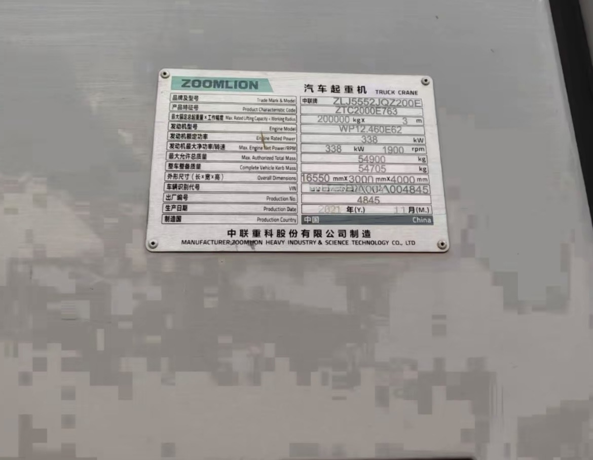 Check the technical data of the unit, picked out from the catalog of ZOOMLION Mobile crane.